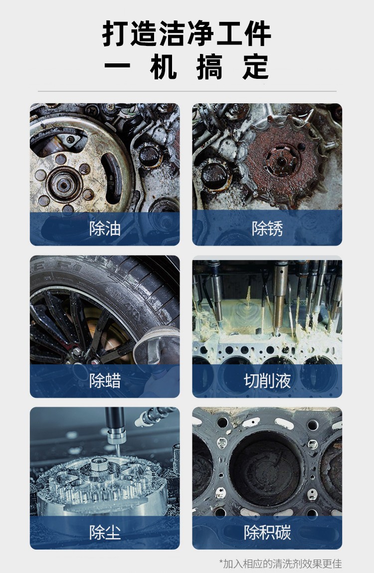 2、适合工厂及其他场景使用,清洗范围较为广泛,如:电子五金,医疗器械,电镀氧化,冶金零件,钟表配件,精密机械,玻璃器皿等